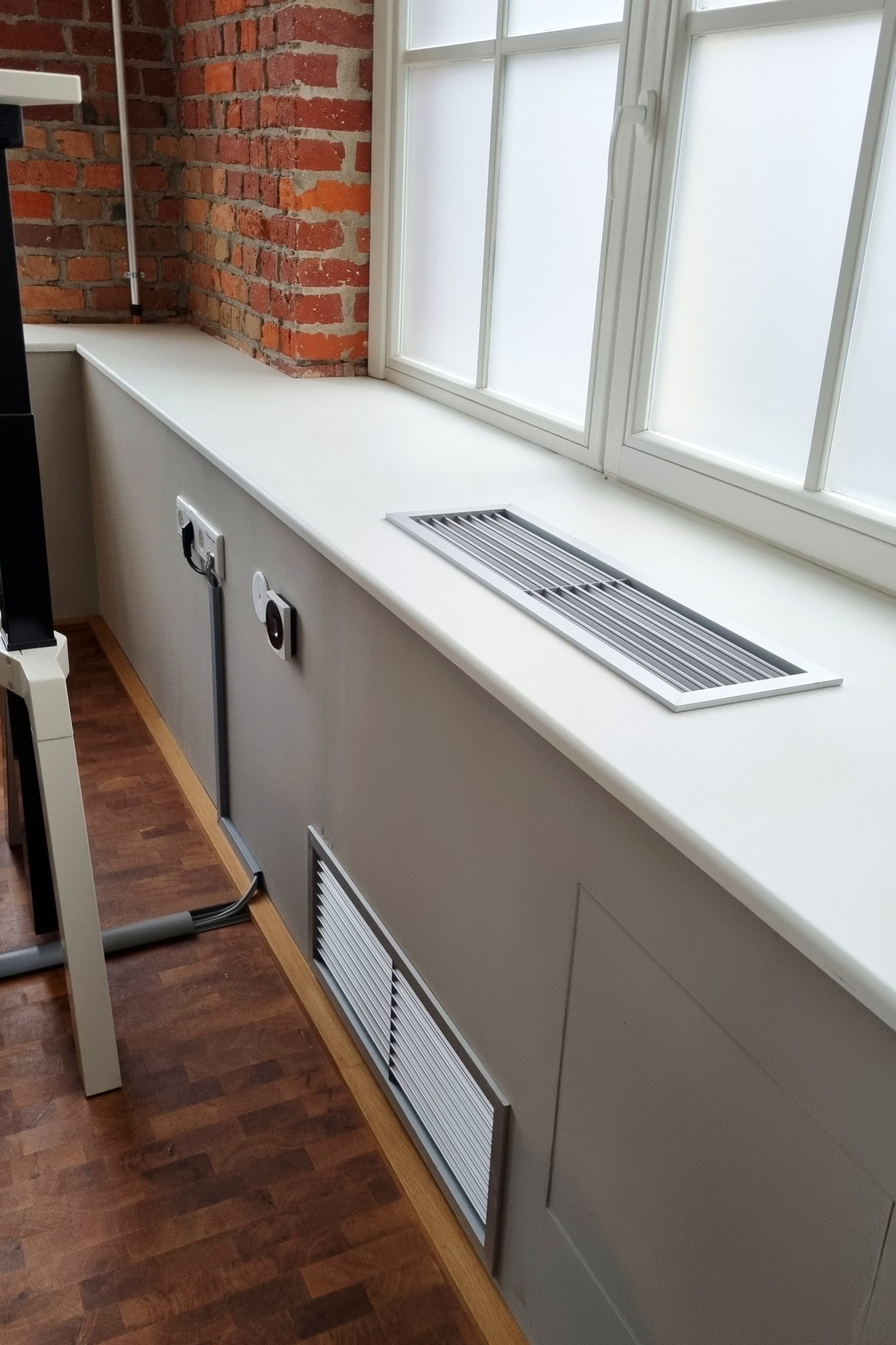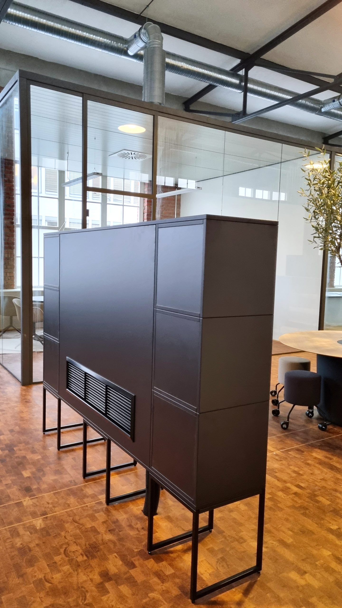 In dieser sanierten Backsteinhalle, die heute als Bürogebäude mit integrierter Lounge genutzt wird, wurde eine leistungsstarke DAIKIN VRV-Anlage mit einer Außeneinheit (30 kW) und insgesamt 23 Truhen- und Kassetteninnengeräten installiert. Ergänzend sorgt eine Lüftungsanlage mit 25 kW für den notwendigen Frischluftaustausch und ein angenehmes Raumklima.